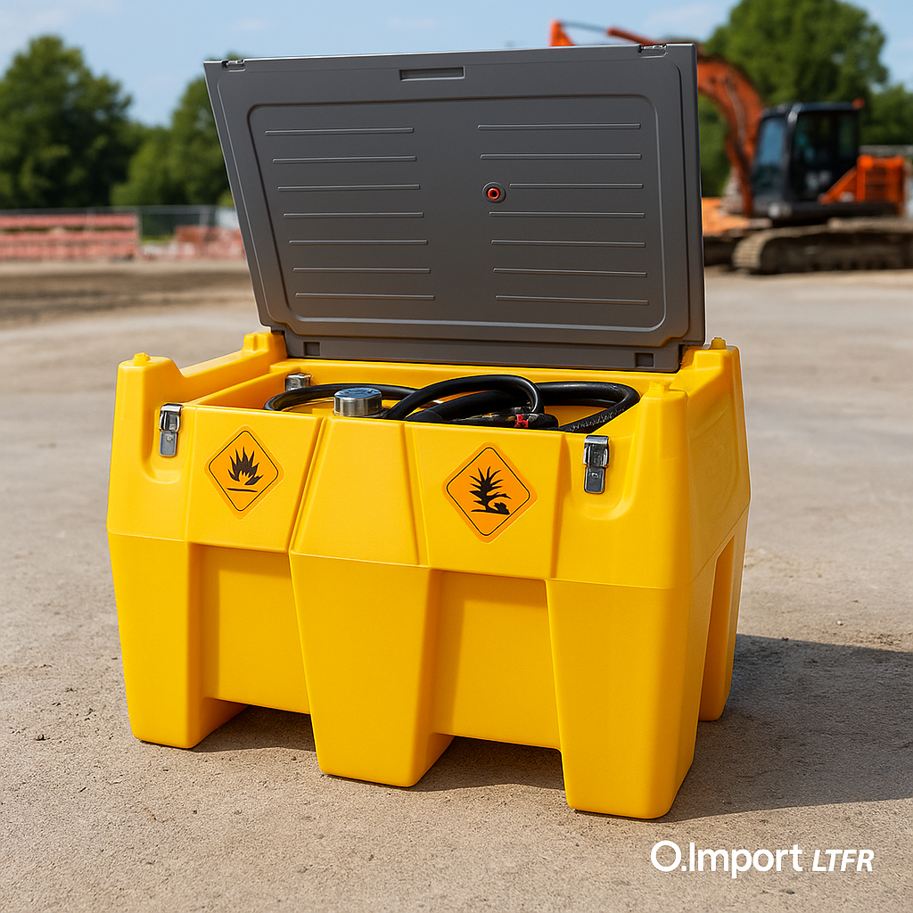 Équipé d’un couvercle verrouillable, d’un pistolet de distribution, d’un tuyau flexible et d’une pompe intégrée, il permet un ravitaillement rapide et propre sur chantier, en exploitation agricole ou dans un garage
